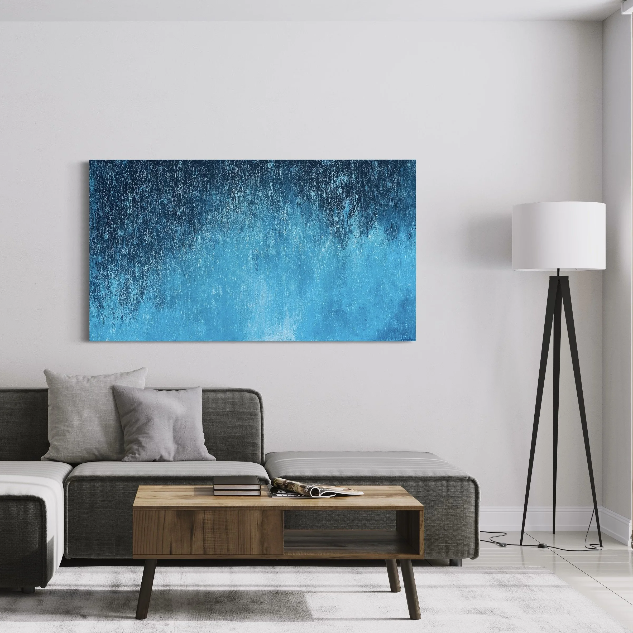 Inspired by the peaceful energy of home. “Me and my girlfriend commissioned a painting for our new house, specifically for the living room. The experience of working with Ana was satisfactory from every point of view: she heard our needs, she was timely and she delivered an excellent painting which is now part of our living room as a main character.